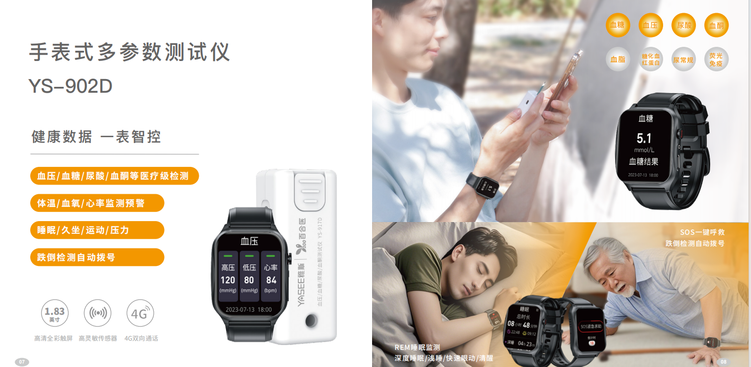 用途: 用于血压、血糖、尿酸、血酮、体温、血氧、心率、睡眠、运动等指标的检测